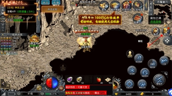 4、超高爆率搭配拉满的攻速,一心为万千传奇兄弟打造真正的免费打金服。