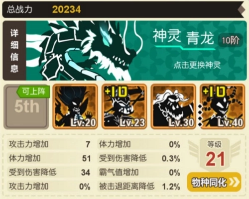 3、第一个技能升级到下一级需要5个绿色怪物,第二个技能需要5个蓝色怪物,第三个技能需要5个紫色怪物,第四个技能需要5个橙色怪物;