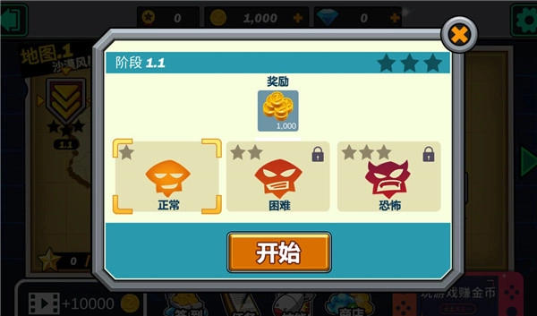 选择游戏难度,点击开始进入游戏