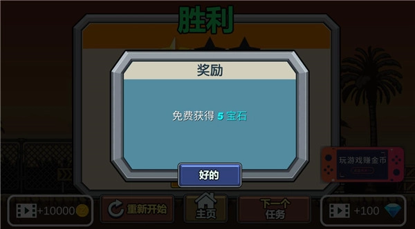 完成游戏可以获得金币奖励和宝石奖励