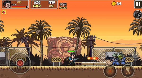 操纵角色战斗消灭敌人,除了枪支外还可以使用手榴弹快速解决敌人