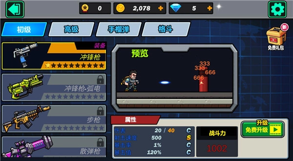 所获得的游戏奖励可以用来给武器升级,提升战斗力
