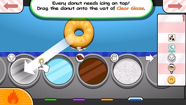接下来要进行的是【糖霜装饰】环节,只需将甜甜圈拖动到对应的区域,机器便会自动完成上糖的流程。