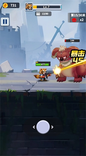 无人黄昏游戏的玩法是经典的横版射击,你需要在充满危险的关卡中前进,使用各种枪械来对抗敌人。每一次射击都要精准,因为在这个末日世界中,生存是唯一的目标。游戏还提供了丰富的武器和装备供你收集,你可以根据自己的战斗风格和需求来选择和升级。通过养成和升星系统,你可以让你的小浣熊变得更加强大。