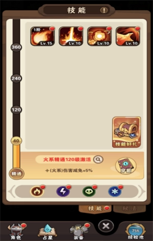 4、不断通关后,逐渐解锁“冰、毒、雷、火”四系技能。消耗技能卷轴和对应技能书升级升阶技能,激活精通属性,该系技能加成伤害更多。当你到达秘法研习的深度时,自动割草机就是你本人!