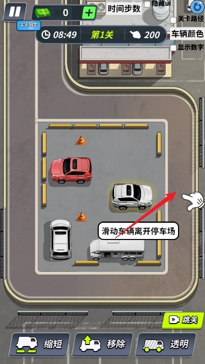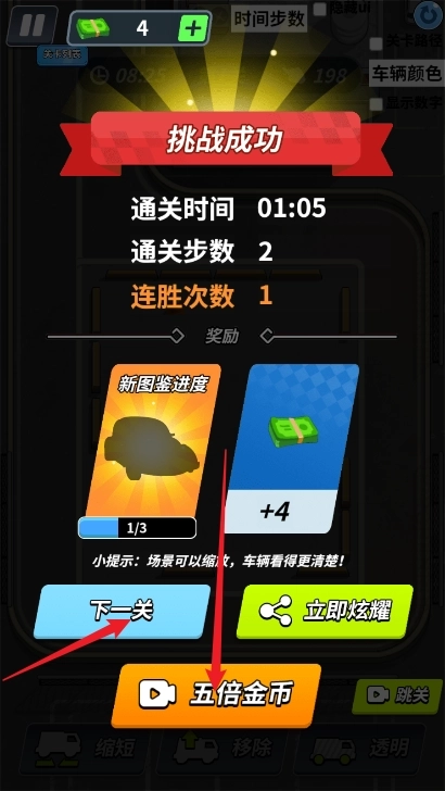 当玩家遇到卡牌时,可借助提示道具查看最优移动路线;若操作失误,能通过取消道具回到上一步,防止重复犯错。若想快速通关,使用加速道具即可让车辆自动优化移动路径,节省不必要的时间消耗。