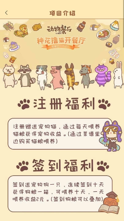 零成本就能参与的项目,每天都能领到1到15元,真的超棒!每天只需要简单操作几下,就能有零花钱收入,想想都觉得开心!另外,动物餐厅的首码预热内排活动马上就要在8号开启啦!活动期间会赠送价值5800元的宠物猫,激活之后每天签到还能获得2元奖励哦!