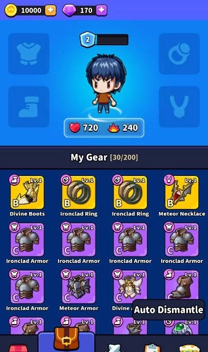 2、然后不断地获得装备