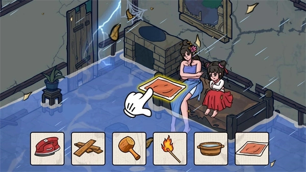 1、第一步要把漏风的窗户修缮好,直接点击物品栏里的木板,就能简单地钉上去。
