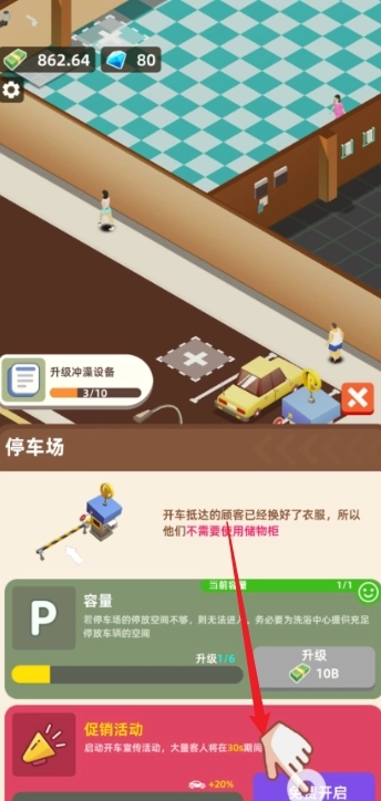 3、玩家的创业之旅始于小镇上一家基础的洗浴中心,需持续扩建并升级各类设施,以此吸引更多顾客光顾。