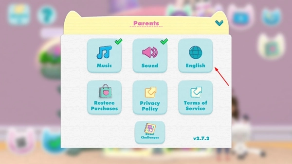 1、第一步先启动盖比的娃娃屋游戏,接着点击界面右上角的设置图标。