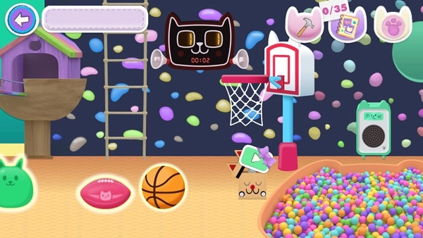 3、如在游戏室,玩家可以打篮球、搭积木等。