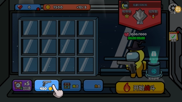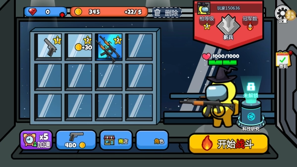 进入游戏点击金币解锁枪支,放置在背包当中,随时准备开始战斗。