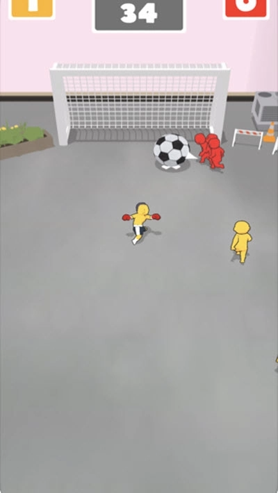 操控小人争夺足球的掌控权,引导足球冲向前面的球门完成射门;
