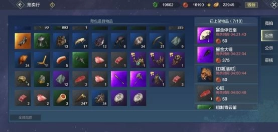 卖家能够把任何可流通的物品放到拍卖行进行售卖,不过每个旅者最多只能挂10件物品。