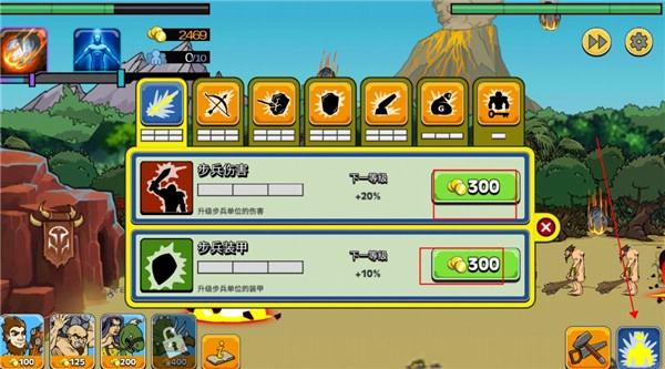 5、除此之外,点击右下角此处,还可以花费金币,升级士兵们的各项属性,以便能够更高的击溃敌方