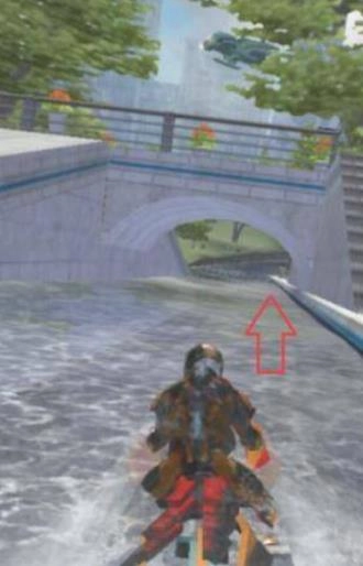行驶到桥洞位置时要留意,得让快艇从缝隙嵌口穿过去,水艇是没办法开上石阶的。