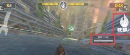 6、到水面平稳处,按右侧火苗的喷射,可以开启加速,并把闸门打起,就会让速度达到最快,从而超过其他快艇。