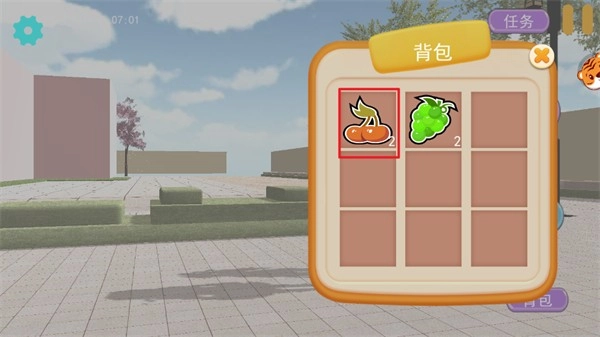 现在能看到背包里有两串樱桃和葡萄,点击樱桃的图标就能查看详情。