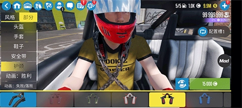 从首页进入游戏界面后,点击车身标志,就能购买赛车,或者为车手配备整套帅气的赛车服装。