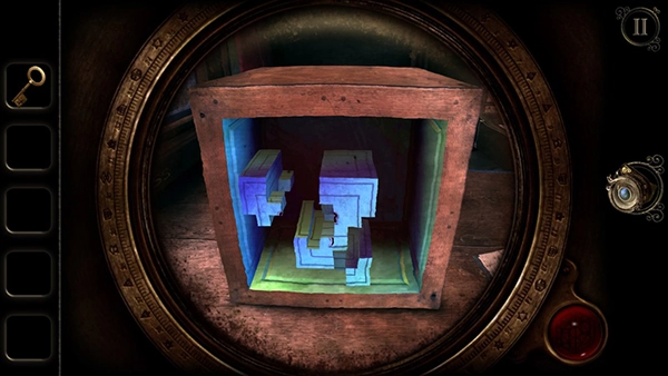 6、组合完成后,就可以用钥匙打开木盒子啦!打开后能收集盒子里的神秘三角体。