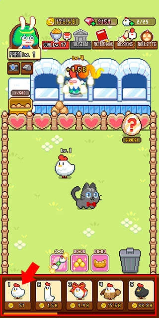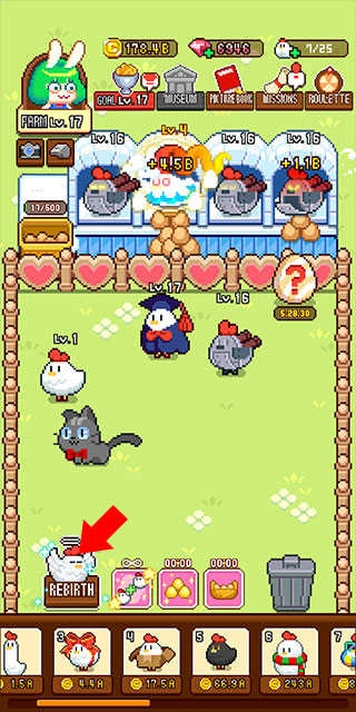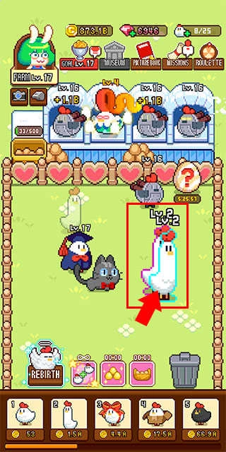 5、当小鸡升级到特定等级后,点击左下方即可完成升级操作;升级后游戏会重新开始,同时解锁更高等级的小鸡。