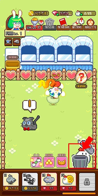 4、对于不需要的小鸡,可通过点击并拖动小鸡至右下方的垃圾桶位置来进行处理