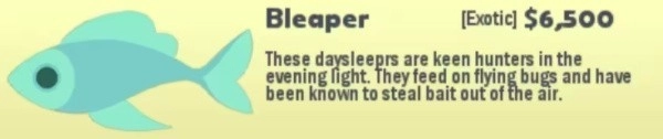 行为:能从比较远的地方发现你的鱼饵,有点烦。