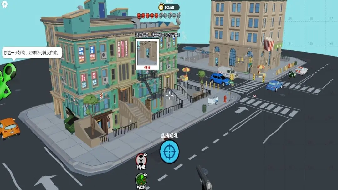 狙击外星人联机版的玩法相当有趣,广阔的城市地图可供探索,形形色色的外星生物潜藏在各个角落,玩家需要搜寻并消灭它们。游戏过程中会触发多种随机事件,大大提升了挑战性。完成的任务越多,能获取的奖励也越丰厚。总体而言,这款游戏值得一试。