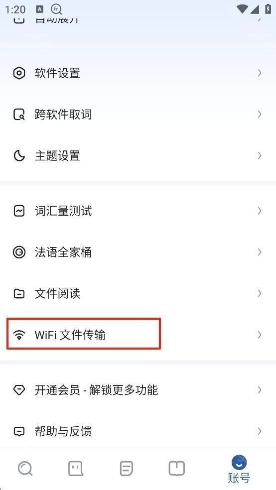 5、打开手机词典客户端帐号->词典库管理,确认传输完成的词典。