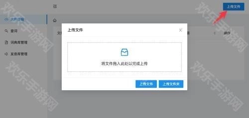 4、在打开的网页中点击上传文件按钮,将保存于电脑中的词典文件传输到手机本地存储中(eudb_en目录)。