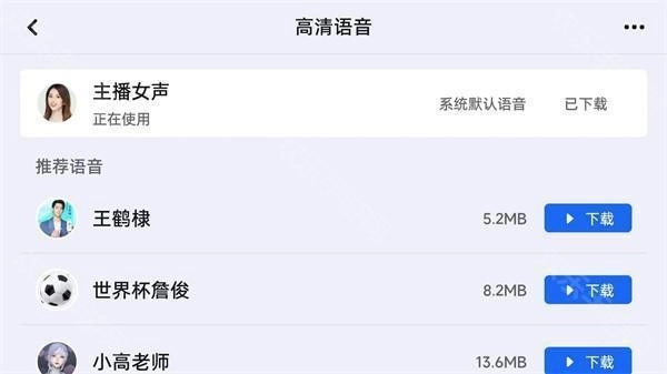 4、进入高清语音界面后,挑选心仪的语音包即可完成切换使用。