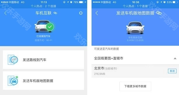 3、手机与车载设备可实现无缝连接。在手机端搜索好目的地后,只需轻点一下,就能同步至汽车的信息娱乐系统,随即即可直接启程。