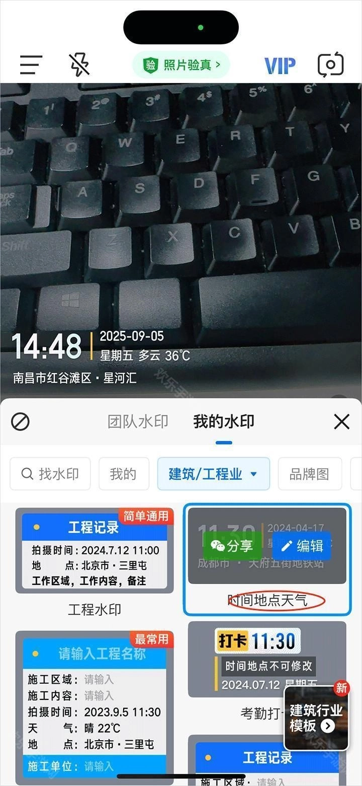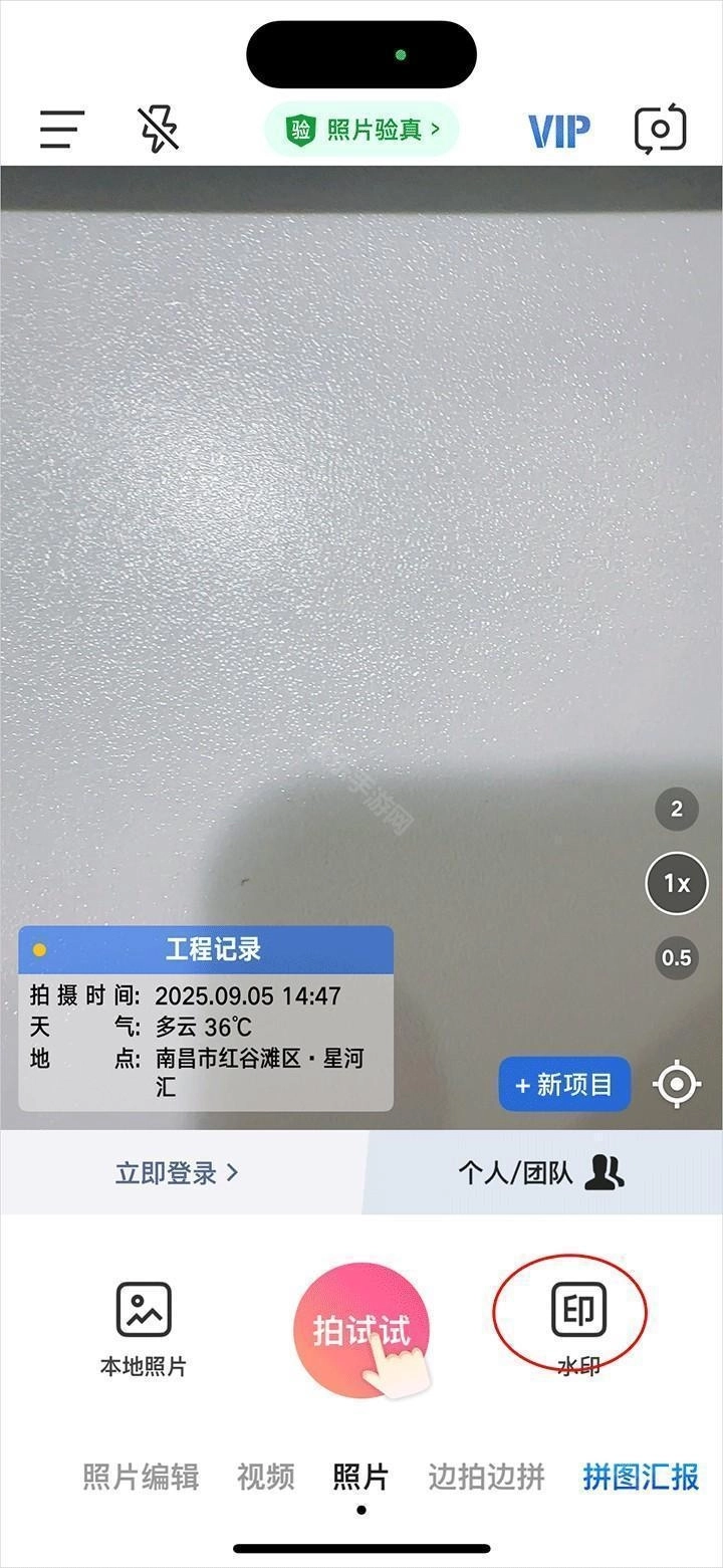3、拍照时会自动生成水印,以后不需要添加。