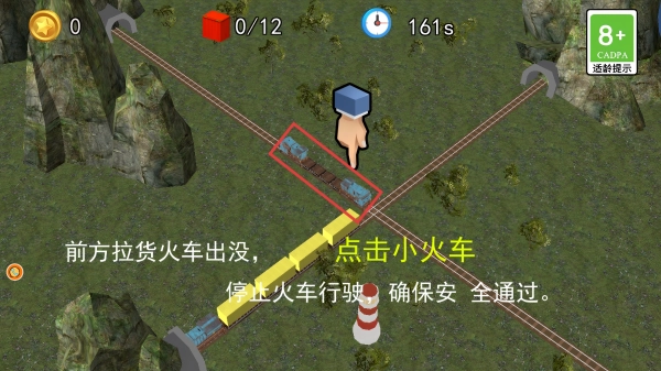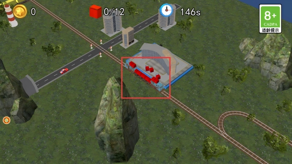 遇到【拉货火车】时,点击【小火车】停止行驶,等待【拉货火车】驶过,确保我们的火车能安全通过交叉轨道。