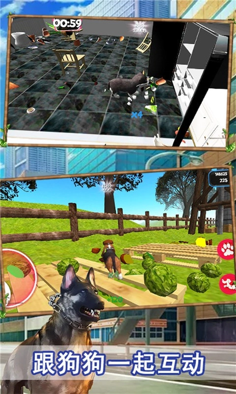 这里有不少不同品种的小狗可供挑选,里面所有的物品和建筑都能随意破坏。