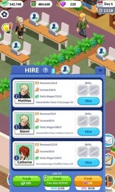 采访员工,招募并管理更多员工来获取游戏内货币!不过部分员工会在工作时段打瞌睡。