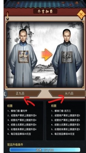 沉浸式官场体验:从九品芝麻官起步,依靠招募门客、处理日常政务一步步晋升,真实复刻清朝官场的生态环境。每一次晋升都会带来全新的权力与挑战。