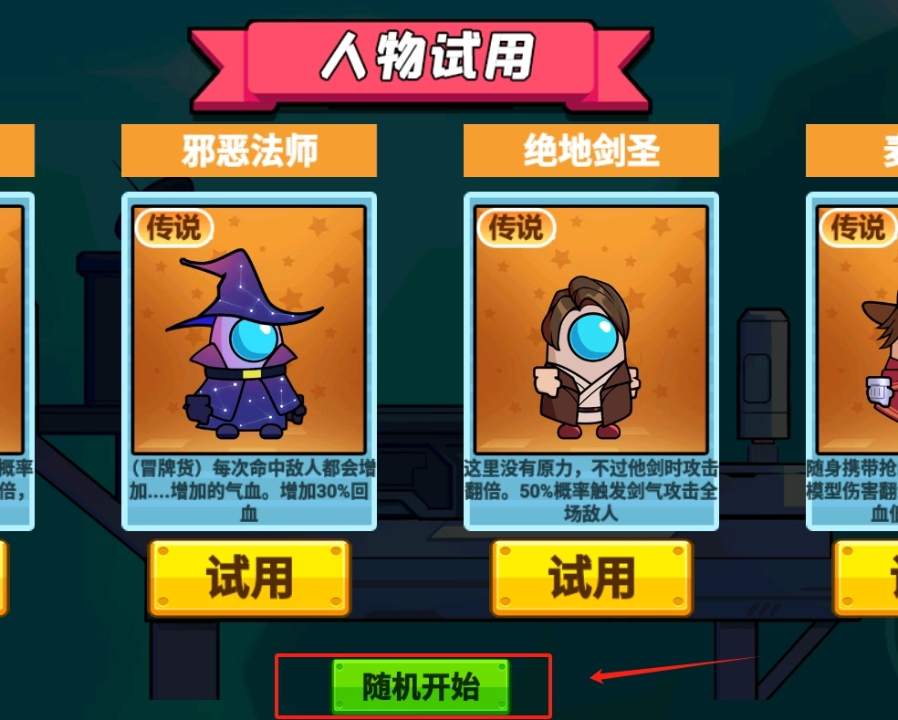 2、在人物试用界面,点击黄色试用按钮可体验当前展示的传说品质角色。