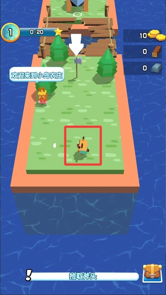 1、进入游戏后滑动屏幕控制角色移动,走到发光工具处捡起斧头准备进行木材收集工作。