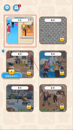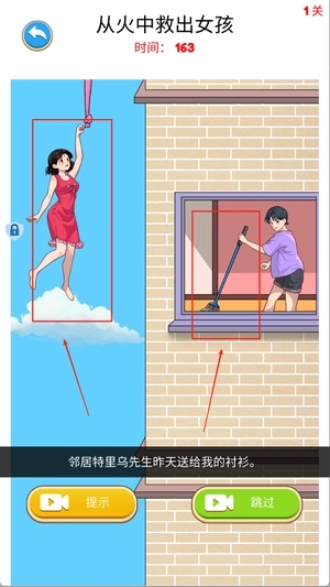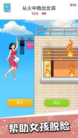 2、这里的关卡中还会出现多个不同的救援挑战,查看具体状况设计合理计划,例如女孩挂在晾衣架上需快速营救。