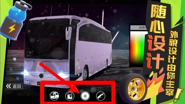 3.车辆自定义界面:提供整车外观、喷漆颜色、轮毂款式与配件修改等多项选项,打造你专属风格的梦幻巴士。