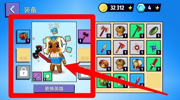 1.装备界面展示不同英雄与武器,可自由更换角色并搭配道具,提升整体战斗力和作战风格,打造独特专属勇士。