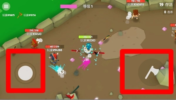 3.战斗界面左侧为移动摇杆,右侧为攻击按钮,需灵活走位并精准投掷斧头,在混战中击败敌人争取最终胜利。