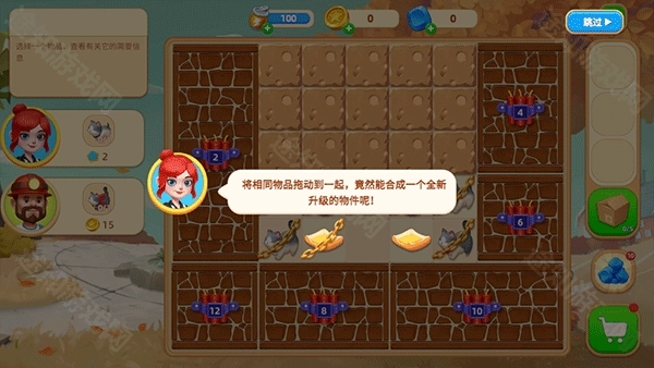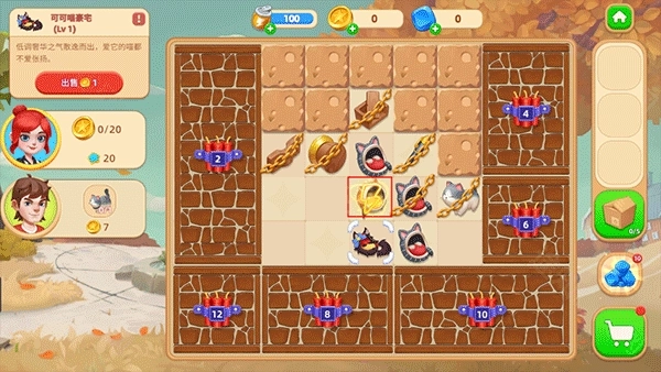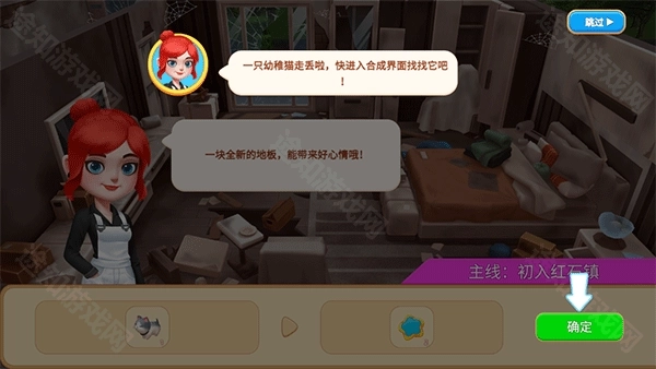 1、进入游戏后,完成对话后,开始新手引导,首先我们需要通过合成找到丢失的小猫。