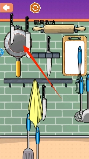3、通过拖拽将散落的厨具放入指定区域,当所有物品摆放整齐时,会触发完成动画和评分界面。