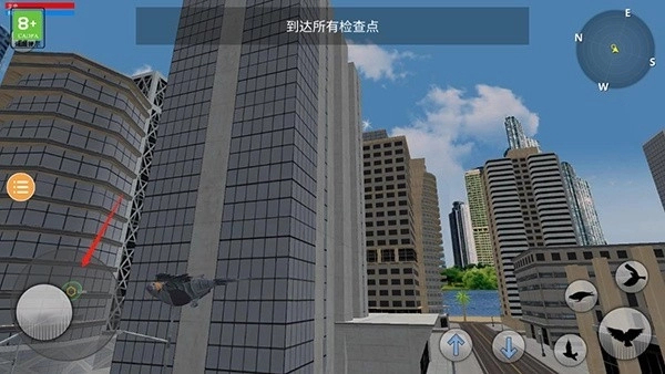 1、广阔的地图设计自由的在城市上空中冒险探索。