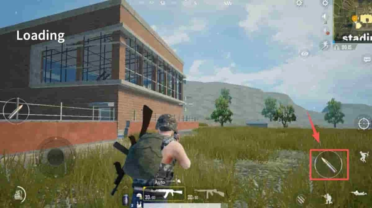4、准备射击。在游戏场景里,找到武器图标,为射击操作做好准备。