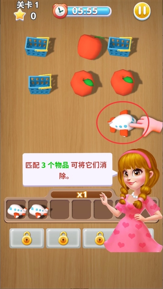 1、基础操作很简单,只要轻点相邻2个及以上相同的物品就能合并,当凑够3个时会自动消除,这样就能腾出空间去完成关卡目标啦。这种简单的触控方式能让不同年龄段的玩家都快速上手。