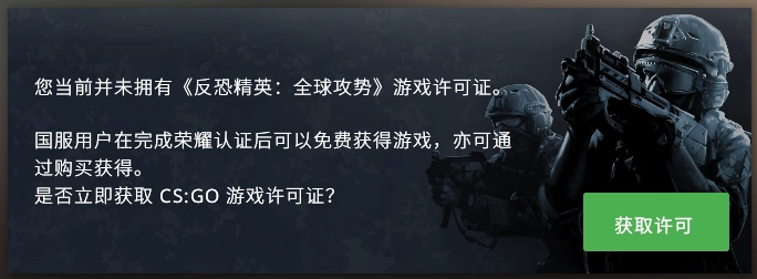 2.选择“购买CS:GO许可”选项